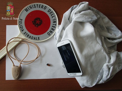 Nonostante ciò, la sua prova terminava senza errori. Ma subito si è scoperto che all’orecchio destro aveva un auricolare. Per tale motivo, l’uomo è stato condotto presso la Caserma della Stradale, ove i poliziotti hanno appurato che, sotto la maglietta, aveva nascosto uno smartphone e un trasmettitore WiFi. Con quel sistema aveva ripreso e trasmesso i quiz a qualcuno, dal quale era riuscito a ottenere le risposte giuste. La Polstrada di Lucca ha denunciato la persona, sequestrandogli tutto quanto gli era servito per cercare di passare l’esame.