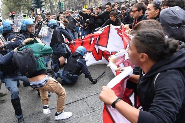 Quanto agli scontri di ieri sono state indagate per resistenza a pubblico ufficiale, e poi rilasciate, le tre ragazze fermate a Torino dopo l’attacco alle forze dell’ordine durante le proteste anti G7. Intorno alle 23, i contestatori del summit, scesi in strada per un corteo notturno nelle vie del centro, avevano lanciato petardi e fuochi d’artificio ad altezza d’uomo contro la polizia. Poi sono fuggiti in piazza Castello, creando scompiglio alla ‘Notte dei ricercatori’ che si stava svolgendo nella piazza torinese. Nessuna carica e nessun lancio di lacrimogeni da parte delle forze dell’ordine. Le varie anime della protesta contro il G7 (i centri sociali, gli studenti, gli anarchici del Fai e i disoccupati) si sono poi unite oggi nel corteo arrivato a Venaria, sede del vertice.
