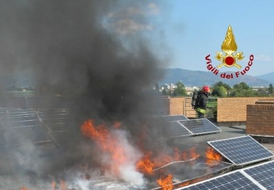 I pannelli fotovoltaici in fiamme, minacciata la scuola pratese