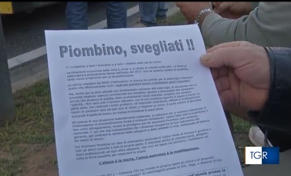 PIOMBINO – Tornano a protestare gli operai dell’acciaieria Aferpi, ex Lucchini, che non vedono vie d’uscita alla crisi, nonostante le promesse di Governo e del Governatore Rossi. Lo fanno in modo simbolico, montando su un trenino che attraversa Piombino, l’unico treno che funziona, visto che quello dell’acciaio, che Cevital aveva promesso di riattivare, è sempre desolatamente fermo. Hanno diffuso anche un volantino dal titolo Piombino svegliati! nel quale riassumono la difficilissima situazione economica e sociale di tutta la zona, invitando le istituzioni a darsi una smossa per un rilancio delle attività, a cominciare da quelle industriali e portuali. L’invito è significativo: