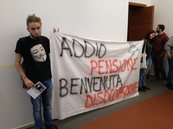 SIENA – Contestazione pacifica di un gruppo di studenti questo pomeriggio per l’ex ministro Elsa Fornero, a Siena per partecipare a un convegno dal titolo ‘Alfabetizzazione finanziaria come strumento di progresso individuale e sociale,’ organizzato dall’università. Accolta da striscioni con la scritta ‘Choosy e incazzati’ e ‘Addio pensione, benvenuta disoccupazione’, Fornero ha provato a dialogare con chi la contestava ma, il gruppo di una decina di studenti, ha continuato a ricordarle le sue decisioni prese da ministro nel governo Monti, soprattutto in tema di lavoro. I contestatori hanno poi abbandonato l’aula tra i timidi applausi degli altri studenti.