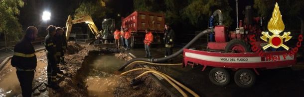 GROSSETO – Sembrava solo un piccolo allagamento dovuto ad una perdita d’acqua ma nella notte tra sabato e domenica in via Sonnino a Grosseto si è aperta una vera e propria voragine nella strada. I vigili del fuoco sono intervenuti intorno alle 4.00 con un’idrovora per portare via l’acqua fuoriuscita per la rottura di un tubo. Gran parte della città è rimasta senz’acqua. L’intervento si è concluso intorno alle 10.30 di stamani con la voragine che è stata chiusa. L’area rimane comunque transennata. Acquedotto del Fiora ha intanto predisposto tre autobotti, in diverse zone della città per rifornire gli utenti. Il Fiora consiglia comunque di tenere chiusi i rubinetti per far riempire le autoclavi.