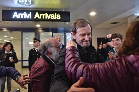 FIRENZE – E’ sbarcato a Peretola fra cori da stadio. E ha ringraziato il Signore, appena arrivato all’aeroporto di Firenze, don Maurizio Pallù, il missionario di origine fiorentine rapito e poi liberato in Nigeria nei giorni scorsi. Ad accoglierlo una folla di fedeli, molti dei quali condividono con lui il cammino neocatecumenale, amici ed un gruppo di giovani che l’hanno salutato cantando canzoni religiosi accompagnandosi con la chitarra.
