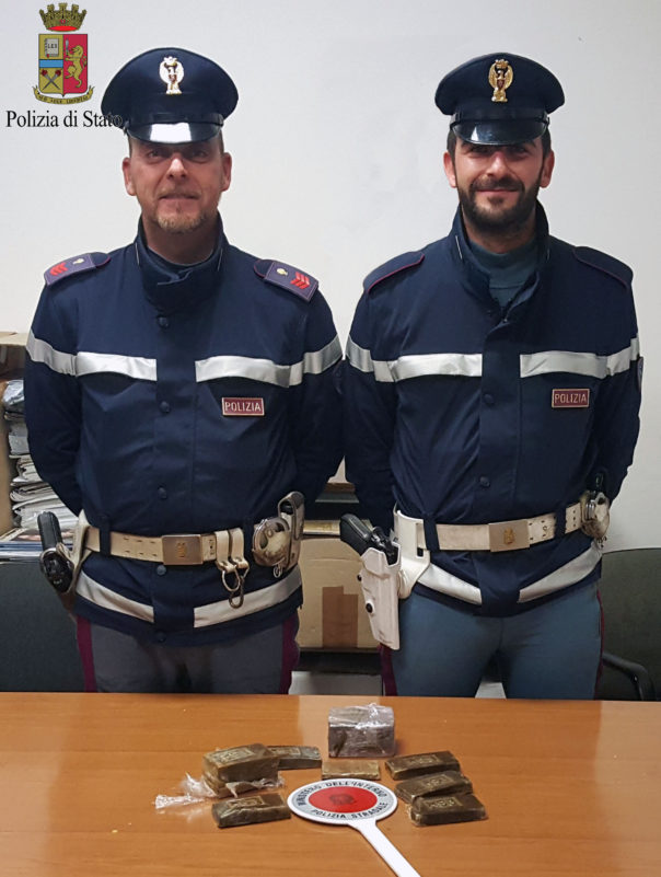 Appena si sono avvicinati l’uomo ha detto di aver già chiamato i soccorsi e, perciò, non aveva bisogno di loro. Quella reazione brusca ha insospettito gli agenti, che dopotutto si erano solo offerti di aiutarlo, e così hanno deciso di fermarsi per un controllo. E hanno avuto ragione, perché hanno scoperto in un sacchetto della spesa, nascosto sotto il sedile del passeggero, quattordici panetti di hashish: la droga, piazzata sul mercato, avrebbe fruttato circa duemila euro. La Polstrada ha sequestrato droga e auto. L’uomo è ora agli arresti domiciliari.