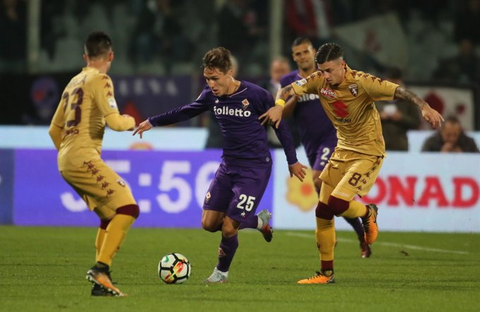 BENASSI – E’ buono il fraseggio della Fiorentina, però manca d’incisività. Il rischio è che, senza Thereau, la situazione finisca per peggiorare. Il Torino non sta a guardare: spinge e guadagna calci d’angolo a ripetizione. Ma sono i viola (29′) a passare in vantaggio: fenomenale apertura di Chiesa, da tre quarti campo, per Benassi che s’incunea bene nell’area granata, fa due passi e infila Sirigu con un diagonale che va dritto nell’angolo basso. Benassi: ancora lui. Apre le marcature come aveva saputo fare a Benevento. Ma che gran giocata ha fatto Chiesa! Tutto bene. No il Toro riparte e al 31′ colpisce la traversa con Moretti, antico ex viola. Sportiello era battuto. Non basta: altro brivido, poco dopo, per una punizione diretta sulla quale il portiere viola interviene come un motore a scoppio: in quattro tempi. Chiea è vivacissimo: al 40′ inventa un assist che sembrava al bacio per la testa di Simeone, davanti alla porta. Ma il Cholito non arriva all’appuntamento con la palla. Astori rimedia l’ammonizione per un calcio a Sadiq. Il primo tempo si chiude (dopo due di recupero) con una svirgolata magistrale di Simeone dal limite che voleva agganciare, senza riuscirci, un invitante servizio di Eysseric. Ahi, ahi Cholito: se ti avviti su un traversone così facile quand’è che fai gol? Primo tempo decente della Fiorentina, condito da qualche batticuore di troppo.