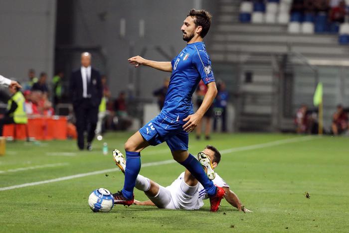 Astori in maglia azzurra, sullo sfondo il ct Gian Piero Ventura