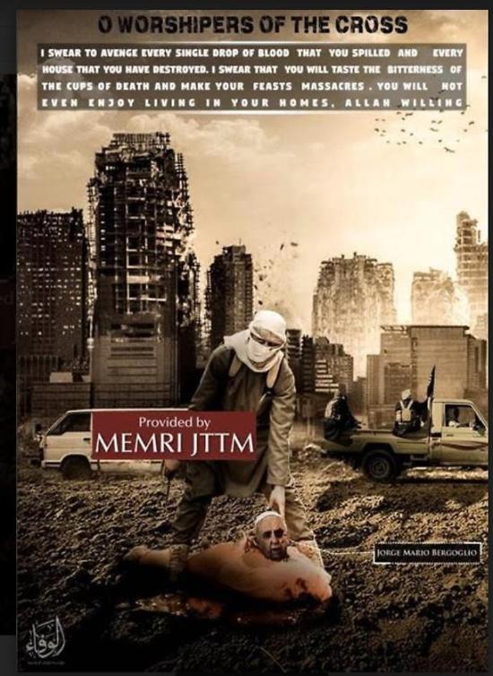 Terrorismo: l’Isis mostra Papa Francesco decapitato e minaccia attentati a natale