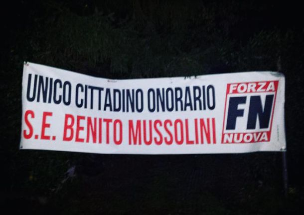 LUCCA – Unico cittadino onorario s.e. Benito Mussolini questo il messaggio chiaro e patriota scritto su uno striscione che Forza Nuova ha esposto sotto casa del sindaco di Lucca Alessandro Tambellini. A darne notizia è