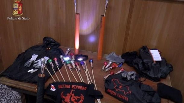 Nel frattempo – prosegue la nota della Questura – un piccolo gruppo di antagonisti travisati ed abbigliati con indumenti di colore scuro, dopo aver percorso un sentiero nella parte bassa della valle che costeggia il torrente Clarea, ha raggiunto la zona est del cantiere di Chiomonte dove è stato sorpreso nell’atto di lanciare alcuni razzi e bombe carta dagli agenti della Digos». Qui sono stati bloccati e arrestati due militanti del centro sociale torinese ‘Askatasuna’, e un giovane pisano, Cesare il suo nome, esponente del centro sociale Newroz. L’accusa nei loro confronti è di «resistenza a pubblico ufficiale, travisamento e possesso ed esplosione di ordigni e materiali esplodenti. Sequestrati infatti 19 razzi e due tubi di plastica rigida utilizzati dai tre fermati per il lancio verso il cantiere».