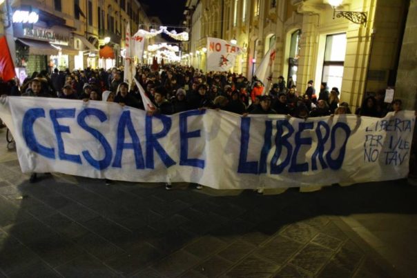 La notizia dell’arresto dell’esponente pisano No Tav ha subito acceso la mobilitazione dei No Tav di Pisa che il 9 dicembre hanno esposto un grosso striscione con scritto ‘Cesare libero’ davanti a Palazzo Gambacorti.