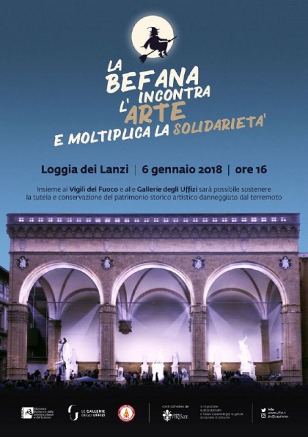 Befana di solidarietà , che oltre ad allietare le famiglie accorse in centro per trascorrere un pomeriggio di festa, vuole restituire una speranza di rinascita alle collettività del Centro Italia colpite dal terremoto: il Comando Provinciale dei Vigili del Fuoco di Firenze e l’Unità di Crisi del MiBACT raccoglieranno spontanee donazioni da destinarsi alla tutela e conservazione del patrimonio storico artistico danneggiato delle Marche.
