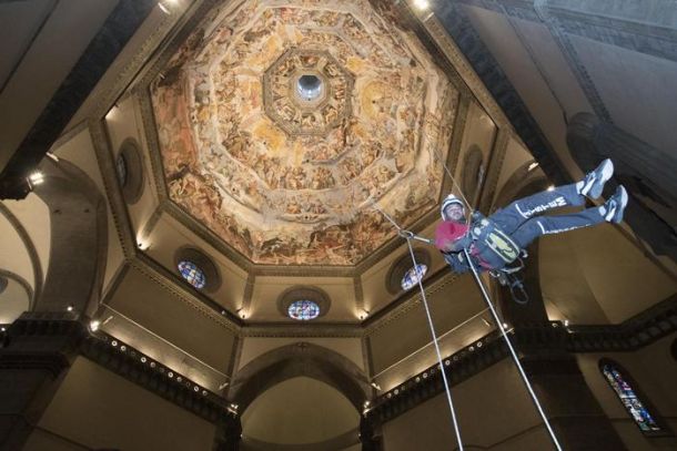 Duomo Firenze: monitoraggio all’interno della basilica con operatori acrobati, appesi alle corde