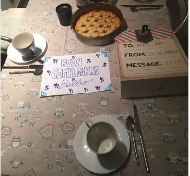 ROMA – «Torno a casa dopo aver registrato Porta a Porta con ancora in testa le domande e le risposte e trovo la tavola apparecchiata così dai miei. Che bello: la vita è più grande della politica! Intanto ridendo e scherzando siamo già a 43 anni e qualche capello bianco. Ma il meglio deve ancora venire, no? Un abbraccio a tutti». Lo scrive su Facebook Matteo Renzi, segretario Pd, nel giorno del suo compleanno. Renzi racconta del suo ritorno a casa, ieri in tarda serata, e pubblica una foto della tavola apparecchiata, con tovaglia decorata da gufi, una crostata e tazze per la colazione e un biglietto con la scritta Buon compleanno babbo!.