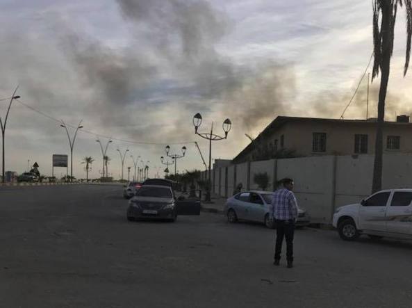 alcuni civili, e 63 feriti. Gli incidenti sono iniziati all’alba quando un gruppo di uomini armati, usando anche l’artiglieria, ha tentato di assaltare la prigione che si trova all’interno dell’aeroporto. Lo scalo è sotto il controllo di una milizia chiamata Forze speciali di dissuasione, fedeli al governo di Fayez al-Sarraj. Gli scontri sarebbero scoppiati tra le forze di Bashir al-Bugra, che sostiene Khalifa