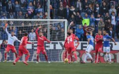 SPORTIELLO – Sono più di milleduecento i tifosi viola arrivati da Firenzre. C’è il sole. Pioli schiera Vitor Hugo al posto di Astori, squalificato. Poi, a sorpresa, inserisce Eysseric al posto di Veretout, anche lui squalificato. Sanchez non dava evidentemente grande affidamento in quel ruolo. E davanti, mancando Thereau, la novità assoluta, almeno in avvio: Simeone e Babacar insieme. La Fiorentina ha subito un’occasione (3′) con Simeone, favorito da un rimpallo. Tiro e parata di Viviano. Ma la conclusione poteva essere assolutamente migliore. Poi Simeone (9′) segna di testa, ma l’arbitro annulla per un presunto fallo di Vitor Hugo su Viviano. Ancora viola all’attacco con la palla migliore (13): cross di Chiesa da destra, Ferrari buca il pallone e Simeone, da due passi, la mette fuori. Ahi, ahi. Anche alla Sampdoria capita una occasione straordinaria al 17′: si può parlare di doppio miracolo di Sportiello. Che prima para su Quagliarella, poi la palla arriva a Kownacki che tira a botta siura a pochi passi dalla porta. Sportiello, alla disperata riesce a respingere ancora.. Paratona, non c’è dubbio.