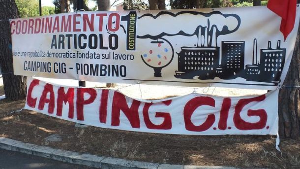 PIOMBINO (LIVORNO) – Uno striscione lungo 22 metri con scritto ”2018, Piombino da salvare, scendi in piazza per lottare”, è stato affisso dall’associazione ”Coordinamento Art.1-Camping Cig”, alla rotatoria della Sol a Piombino. Proprio lì, nel 2015, ricorda una nota, l’associazione tenne il primo campeggio di lotta per il futuro di Aferpi e di Piombino