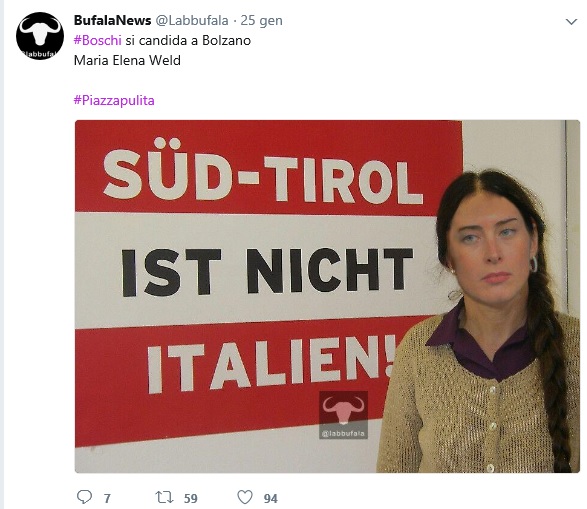 BOLZANO – La rete ironizza sulla candidatura di Maria Elena Boschi nel collegio uninominale di Bolzano. Su Twitter gira un fotomontaggio dell”account satirico BufalaNews (@Labbufala) in cui si vede la sottosegretaria alla presidenza con la treccia e il vestito tradizionale tirolese dell’indipendentista Eva Klotz. Dietro la foto un cartello con su scritto in tedesco: “Il sud Tirolo non è Italia”. E in tanti stanno rilanciando la foto, commentando, “ecco Maria Elena Klotz”.