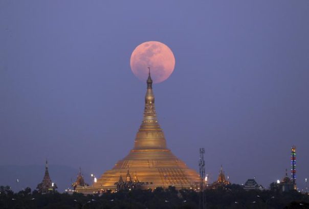 La luna rossa: immagini da tutto il mondo del satellite colorato dall’eclisse