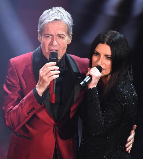La prima superospite della finale del festival di Sanremo è Laura Pausini, guarita dalla laringite che l’aveva costretta al forfait la prima sera, quando era intervenuta al telefono durante la performance di Fiorello. Lo scambio di ruoli, lei è sul palco, lo showman è al telefono. «Laura sei perfetta, Claudio sei perfetto, l’unica cosa che stona è il rossonero», scherza l’interista Fiorello. Fa i complimenti a Baglioni per il successo del festival: «Mi viene da pensare a chi l’anno prossimo deve condurre Sanremo: gira voce che la Rai abbia già contattato il Papa e Melania Trump».