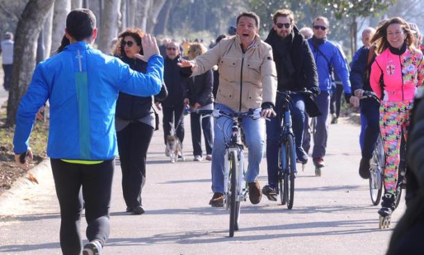 FIRENZE – In attesa di continuare lo spottone elettorale fiorentino domani, 12 febbraio, insieme al ministro Minniti, Matteo Renzi, con Signora Agnese e Sindaco Nardella, ha fatto una biciclettata, partecipata da amici, simpatizzanti e curiosi (neppure molti). E ha affermato: «Il futuro delle città passa dall’investimento che verrà fatto in Europa proprio nelle periferie. Per dare un riferimento noi abbiamo messo 2 miliardi e 100 milioni nelle periferie quando io ero al governo e il governo Gentiloni sta proseguendo molto bene». E subito ha iniziato a pedalare con la bici da corsa dal parco delle Cascine a quello dei Renai, a Signa, per un’iniziativa elettorale. Tanti i temi toccati da Renzi, “gli altri sparano cifre in libertà. Il centrodestra ha un programma da 200 miliardi di euro: non li trovano nemmeno col Monopoli”, che annuncia che gli 80 euro vorrebbe “estenderli per ogni figlio, per ogni mese fino ai 18 anni. Sarà in più rispetto agli assegni famigliari, non in meno”. Con Renzi anche la moglie Agnese e il sindaco Dario Nardella. Poi il pranzo con circa 200 persone in un circolo a Lastra a Signa, a fianco all’ex presidente dell’Anpi di Firenze Silvano Sarti.