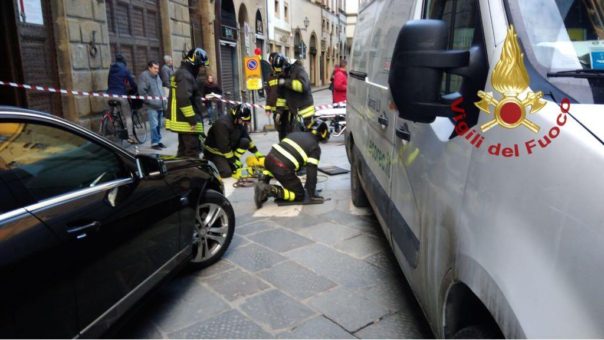 FIRENZE – Incidente stradale di prima mattina, in centro, in piazza Davanzati. Un uomo di 71 anni è stato investito da un furgone ed è rimasto incastrato sotto il mezzo, e per liberarlo è stato necessario l’intervento dei vigili del fuoco. L’anziano, sempre cosciente durante le fasi di soccorso da parte dei sanitari del 118, non sarebbe in pericolo di vita. Sul posto anche la polizia municipale per i rilievi. In base a una prima ricostruzione dei vigili urbani, il conducente del furgone, accortosi di aver sbagliato strada, avrebbe fatto