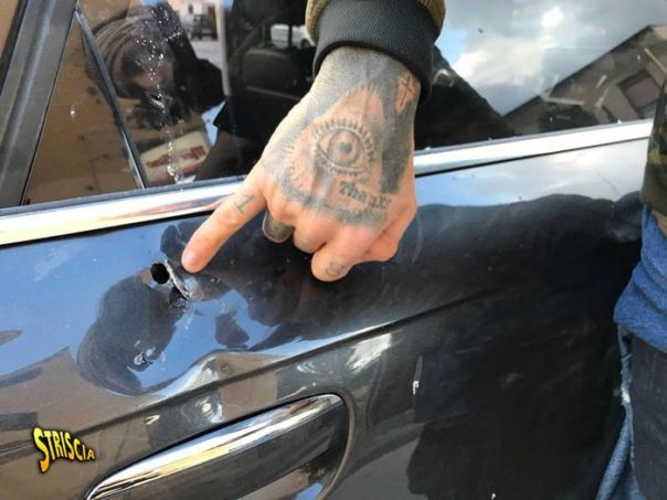 La troupe di Striscia è rientrata nell’auto blindata per ripararsi dagli aggressori, quando all’improvviso il tetto dell’auto è stato sfondato da un pesante blocco di cemento lanciato da un piano alto di una casa e la portiera è stata perforata da un colpo di arma da fuoco, pare di calibro 12 (lo sta esaminando la Polizia). Brumotti e i suoi collaboratori sono riusciti a mettersi in salvo solo grazie all’intervento della Polizia e dei Carabinieri e non hanno riportato ferite. Il servizio andrà in onda prossimamente su Striscia la notizia.
