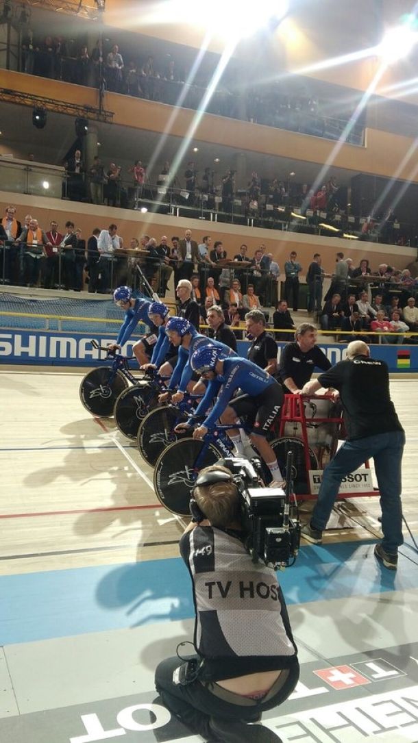 APELDOORN (OLANDA)  – Medaglia di bronzo per l’Italia nell’inseguimento ai mondiali di ciclismo su pista di Apeldoorn. Il quartetto azzurro composto da Simone Consonni, Liam Bertazzo, Filippo Ganna e Francesco Lamon ha battuto la Germania nella finale di consolazione stabilendo il nuovo primato italiano in 3’54″606. Oro alla Gran Bretagna in 3’53″389 che ha sconfitto la Danimarca.