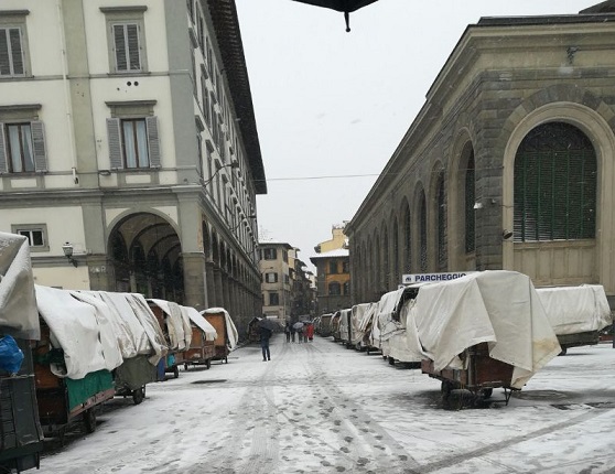 Firenze: la neve nel quartiere di San Lorenzo, imbiancati Basilica e Mercato (fotogallery)
