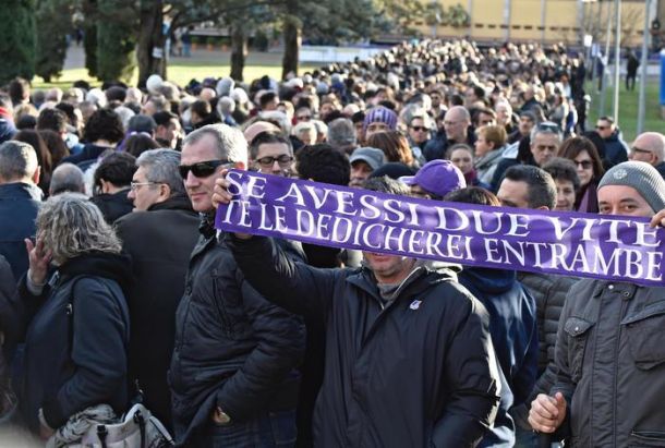Tuttavia, il divieto di far entrare i tifosi nella basilica rischia di farlo sembrare quasi un funerale a porte chiuse, ossia chiuse alle città e ai fiorentini, nonostante il lutto cittadino e la presenza del cardinale Betori in veste di officiante. Si possono comprendere le ragioni di sicurezza: fra l’altro la basilica di Santa Croce (con i Sepolcri cantati dal Foscolo) è fragile: in settembre 2017 la drammatica morte del turista spagnolo colpito da un marmo precipitato dall’alto. Ma viene allora da chiedersi perchè non sia stato deciso di tenere la cerimonia funebre direttamente allo stadio Franchi. In passato fu fatto anche per alcuni tifosi: nel lontano 1975 venne dato l’ultimo saluto in mezzo al campo al mitico Mario Fantechi. Sarebbe stato un addio più partecipato, soprattutto senza esclusioni.