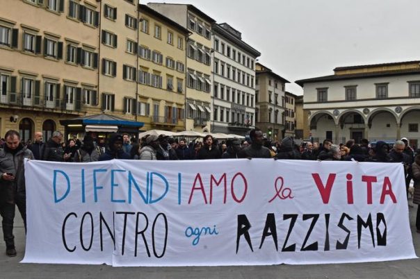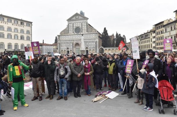 FIRENZE – Migliaia di persone si sono concentrate in piazza Santa Maria Novella a Firenze per partecipare al corteo promosso dalle associazioni dei senegalesi a Firenze, per ricordare il loro connazionale Idy Diene, 54 anni, venditore ambulante ucciso a freddo da Roberto Pirrone il 5 marzo scorso sul ponte Amerigo Vespucci, e contro il razzismo. Secondo quanto previsto il corteo dovrà raggiungere il ponte dell’omicidio. In apertura il servizio d’ordine degli organizzatori è formato da senegalesi con pettorina recante la scritta ”Diritti senza confini”. Un cartello è dedicato alla vittima: ”Idy era una persona di pace non vogliamo fare casino!”. Altre scritte su striscioni e cartelli sono ”Nardella, il vero degrado sei tu puliamo la città dal razzismo”, ”Il vostro decoro non vale una vita spezzata. Antirazzisti con ogni mezzo necessario. Firenze antifascista”, ”Je suis fioriera”, quest’ultima scritta allude ai grandi vasi rotti la sera del 5 marzo in via Calzaiuoli dai senegalesi arrabbiati per la morte del loro connazionale.