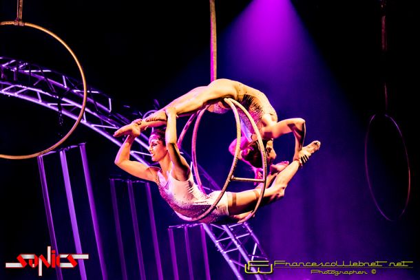 Gli spettacoli dei Sonics coniugano acrobazie aeree mozzafiato e performance atletiche dove potenza e grazia fisica creano un mix perfetto, base per i loro spettacoli sempre sospesi tra sogno e realtà. Acclamati nei teatri e nei festival di tutta Italia, Europa e Asia, sono stati chiamati negli anni a spettacolarizzare eventi di rilevanza mondiale come la Cerimonia di Chiusura dei giochi Olimpici di Torino 2006, l’Inaugurazione dello Stadio di Kiev (Ucraina) per gli Europei di Calcio 2012 e l’inaugurazione del Pitti Uomo di Firenze in Piazza Pitti a giugno 2017.
