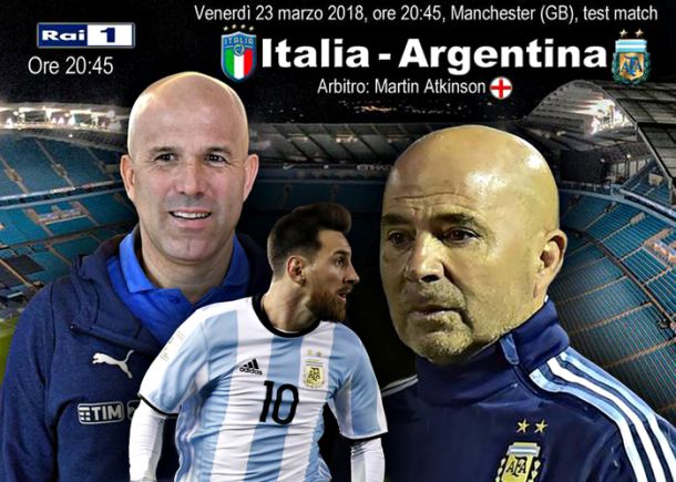 MANCHESTER – Oggi primo impegno dell’Italia dopo la mancata qualificazione ai Mondiali: alle 20:45 gli azzurri del traghettatore Di Biagio sfideranno l’Argentina in amichevole a Manchester. In campo oggi anche Russia-Brasile, Germania-Spagna, Olanda-Inghilterra; a Torino c’è Marocco-Serbia. Nel test di questa sera con l’Argentina (arbitra l’inglese Atkinson, diretta su Rai1 alle 20,45) Luigi Di Biagio, al debutto da ct, punta su un’Italia con il 4-3-3.