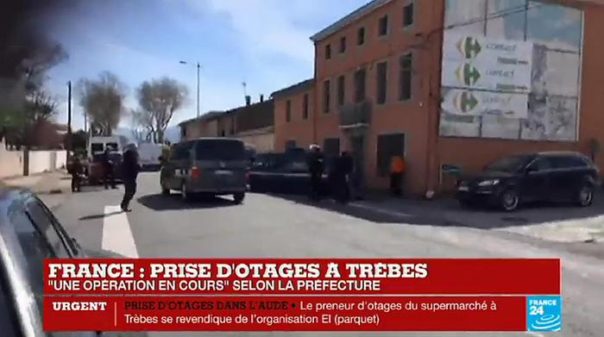 Il sequestratore ha gridato “Allah Akbar” dopo aver sparato contro i poliziotti e prima di entrare nel supermercato ‘Super U’ a Trebes. L’uomo, secondo il giornale locale La Depeche du Midi, avrebbe detto di voler “vendicare la Siria”. Sarebbe armato di diverse bombe a mano. Al momento il sequestratore è rimasto all’interno soltanto con un ufficiale della gendarmeria che era presente al momento della presa di ostaggi.