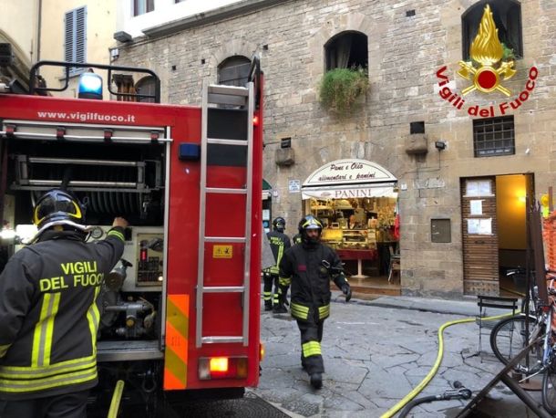 FIRENZE – Fiamme in un ristorante del centro storico di Firenze, il ‘Santa Felicita’, che si trova nell’omonima piazza a pochi metri di distanza da Ponte vecchio. Ad andare a fuoco sono stati la canna fumaria e l’impianto di estrazioni fumi del locale. L’incendio non ha causato feriti ed è stato spento dai vigili del fuoco intervenuti con due squadre. Sul posto anche polizia, vigili urbani e personale del 118. Il fumo avrebbe invaso anche le scale del palazzo attiguo al ristorante, uscendo dalle finestre del primo piano ma senza creare problemi agli inquilini. Numerosi i curiosi e i turisti che si sono soffermati ad assistere, a distanza, all’intervento dei vigili del fuoco.