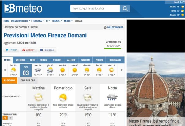 Terzo aprilante quaranta giorni durante: le previsioni del sito 3bmeteo.com per Firenze e Toscana
