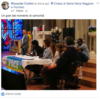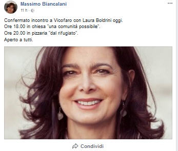 Boldrini ha parlato in chiesa, di fronte ad un pubblico numeroso, ringraziando don Biancalani. Il parroco ha detto: “Abbiamo bisogno di politici come Laura Boldrini, vicina a chi opera in aiuto degli ultimi, come faccio io seguendo le indicazioni di Papa Francesco”.