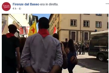 Questa la versione del sito del movimento Firenze Dal basso: «Oltre cinquanta giovani antifascisti provavano a raggiungere piazza Santa Croce per partecipare alla commemorazione del 25 aprile. Aggressioni, cariche per non far parlare giovani lavoratori, studenti, facchino, portapizze, operai stufi dell’ipocrisia delle istituzioni che vorrebbero intestarsi la memoria antifascista. “Abbiamo bisogno di una nuova liberazione da questi parolai, veniamo attaccati da uomini dello Stato in borghese per il solo fatto che senza ambiguità non accettiamo il razzismo delle istituzioni, l’autoritarismo di Renzi e Nardella”. La polizia ha tenuto in ostaggio per due ore cinquanta antifascisti mentre Renzi parlava in piazza della Signoria. Ora la manifestazione si sta muovendo per la zona di Santa Croce chiedendo la liberazione dei fermati».