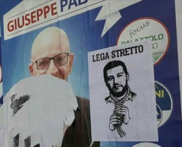 Imola: manifesto di Salvini con il cappio al collo. La propaganda della sinistra funziona così