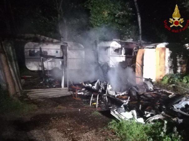 PISA – Un incendio ha completamente distrutto un accampamento abusivo alla periferia di Pisa. Le fiamme, la scorsa notte, hanno divorato due baracche e sette roulotte in una zona in prossimità dell’Arno ma quando i vigili del fuoco sono giunti sul posto non c’era più nessuno e non escludono che il rogo possa essere stato di origine dolosa. Sull’episodio indaga la polizia. Inizialmente i residenti del quartiere avevano dato l’allarme per un incendio sterpaglie ma quando i pompieri hanno raggiunto la zona, dietro ai cespugli hanno scoperto la presenza dell’accampamento probabilmente abitato da sbandati e senza fissa dimora. L’incendio ha interessato due baracche e due roulotte che sono andate completamente distrutte oltre ad altre tre roulotte danneggiate dal calore sprigionato dalle fiamme: una volta spento il fuoco sono stati ritrovati fornelli da campeggio e bombole di gas oltre a un impianto elettrico fatiscente.