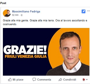 Elezioni Friuli Venezia Giulia: vince Massimiliano Fedriga (Lega, centrodestra) con il 56,06%. 1065 sezioni su 1.369, ma il dato è irreversibile