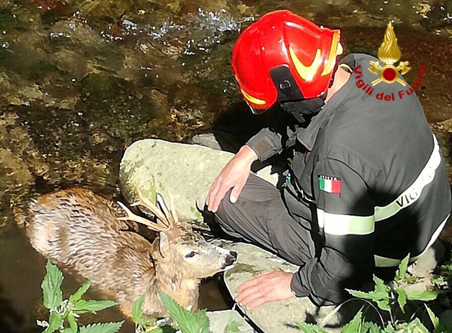 Montecatini: capriolo nel torrente. Salvato dai vigili del fuoco