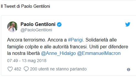 Il nostro premier Paolo Gentiloni ha espresso la solidarietà e il cordoglio del nostro Paese con un tweet