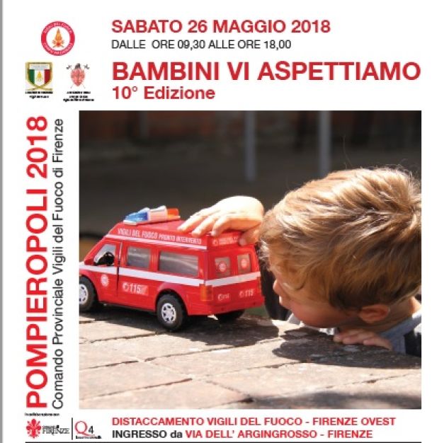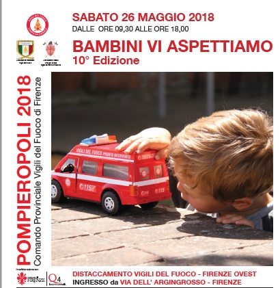 FIRENZE – Si terrà sabato 26 Maggio l’attesissima Manifestazione denominata Pompieropoli, presso il Distaccamento VVF Firenze Ovest (Viadotto Indiano), immancabile appuntamento per tutti i bambini