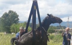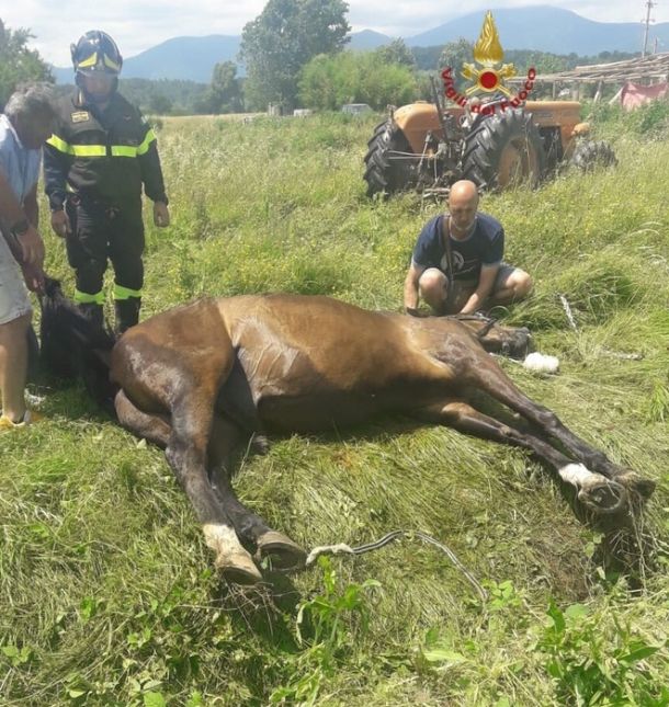 Il cavallo è stato imbracato con un’attrezzatura fatta arrivare appositamente dal comando dei vigili del fuoco di Lucca e poi con l’ausilio di un trattore è stato fatto uscire dal fossato. Le operazioni di soccorso sono state coordinate da un veterinario e l’animale è apparso tutto sommato in buone condizioni.