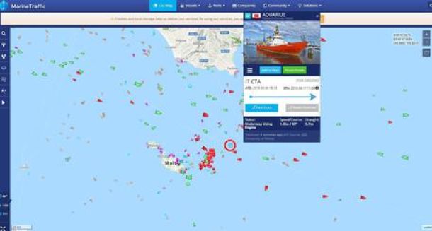 La localizzazione di Aquarius in mare