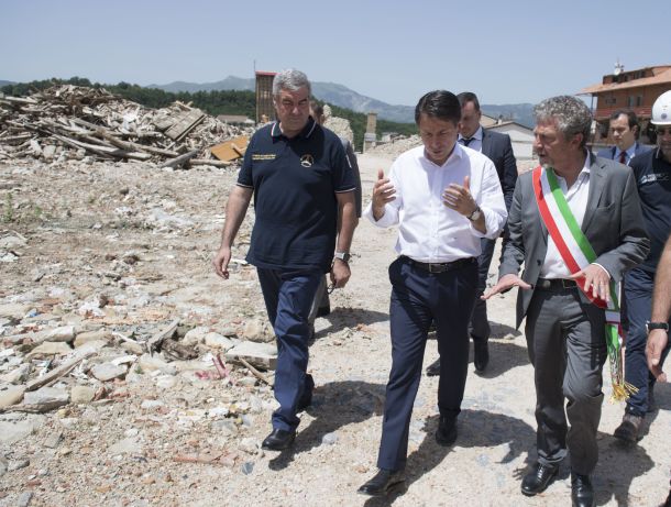 AMATRICE – La nuova moda del nuovo governo sembra quella di partecipare alle cerimonie ufficiali in maniche di camicia. Nel corso della sua lodevole, apprezzata e doverosa visita nei luoghi del terremoto del 2016, il premier Giuseppe Conte ha depositato anche una corona di fiori nel parco di Amatrice, davanti al monumento dedicato alle vittime del comune laziale. Come si vede dal filmato il premier, raccolto e serioso, ha depositato la corona di fiori al monumento delle vittime, ai due lati i carabinieri in alta uniforme, con una disinvolta mise in maniche di camicia. Mentre il sindaco era in giacca e fascia tricolore, sia pur senza cravatta. Altri esponenti passeggiavano accanto a loro con la maglietta della protezione civile, come se partecipassero a una scampagnata, senza il dovuto riguardo e rispetto per le vittime e per chi è rimasto ancora senza abitazione.