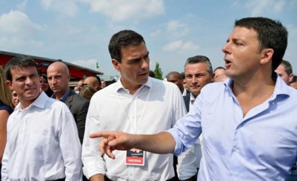 Ricordiamo che anche Renzi, nelle sue vesti di rottamatore, aveva inaugurato la partecipazioni ad alcune riunioni ufficiali in maniche di camicia, stile Obama, ma si trattava di riunioni di leader di partiti socialisti europei (lo vediamo con Sanchez e Valls).