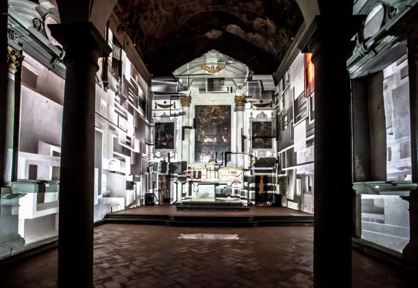 DA LUN 18 A GIO 28 ORE 20.30 CHIESA: ARCHITETTURA DI LUCE. Ambiente/installazione di Giancarlo Cauteruccio, con Massimo Bevilacqua allestimenti, Alessio Bianciardi elaborazioni video in collaborazione con gli allievi del TEARC (Laboratorio di Teatro-Architettura) e dell’Accademia di Belle Arti.