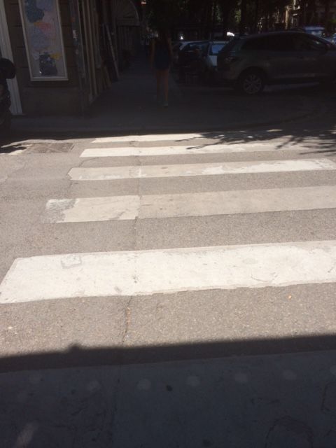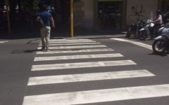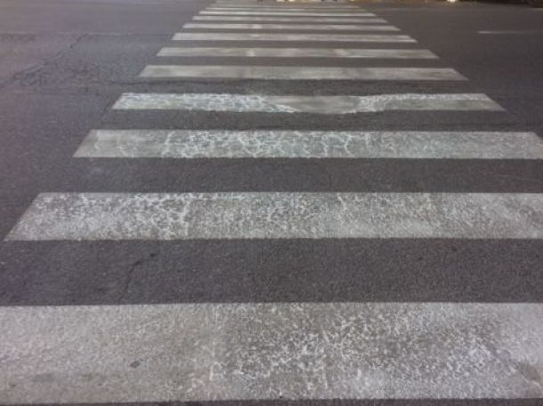 Ma ancor peggio per le strisce ridipinte nel Viale Don Minzoni, che dopo 24 ore sono quasi invisibili come prima, annerite da passaggio di pneumatici di auto, camion, autobus, moto e pedoni.