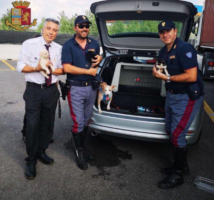 Autostrada A1: canina e 7 cuccioli abbandonati nell’area di servizio Arno, a Reggello. Li salva la Polstrada (Foto)